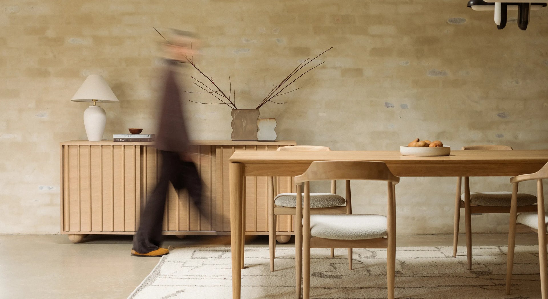 Completing the Pinch's aesthetic is a hemispherical leg, crafted from Solid American Oak and adding a playful touch that also gives the pieces a floating feeling.