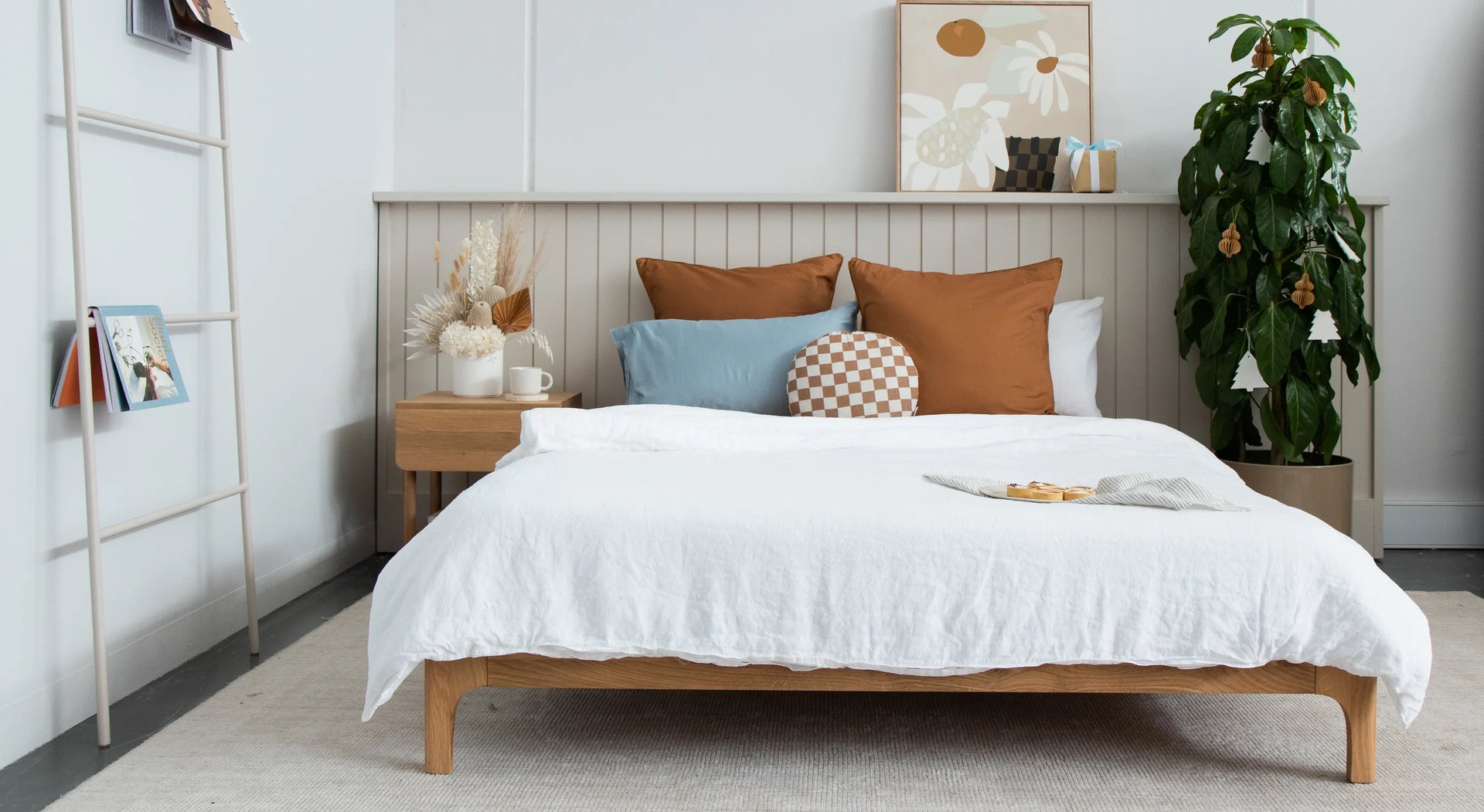 Wall panelling can also be used in any space that tiling might be used. For bathrooms or kitchens, moisture resistant wall panels can be an ideal option to tiling. Consider incorporating a shelf to the wall panels to provide storage for both bathrooms and kitchens spaces.