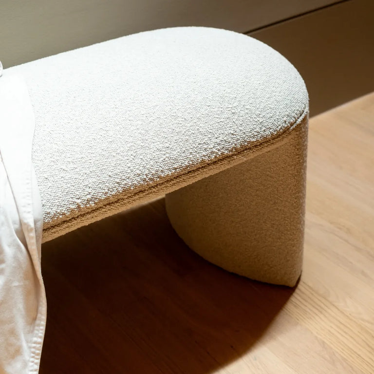 Inside the home, the attention to detail is evident in the thoughtfully selected furnishings. The Almos Stool and Almos Bench, both in Copenhagen Grey, add a touch of sophistication while maintaining a cosy, welcoming vibe. These pieces seamlessly integrate into the living and bedroom spaces, offering versatile seating options that enhance the home's functionality.