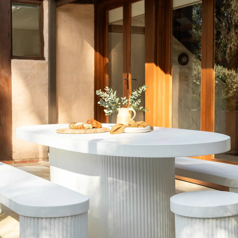 Featuring RJ Living items like the Furrow Outdoor Dining Package, which transforms the backyard into an inviting space for family gatherings and alfresco dining.