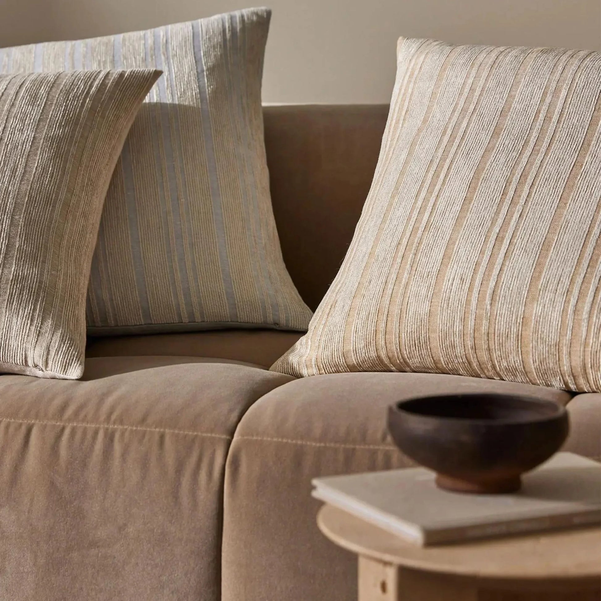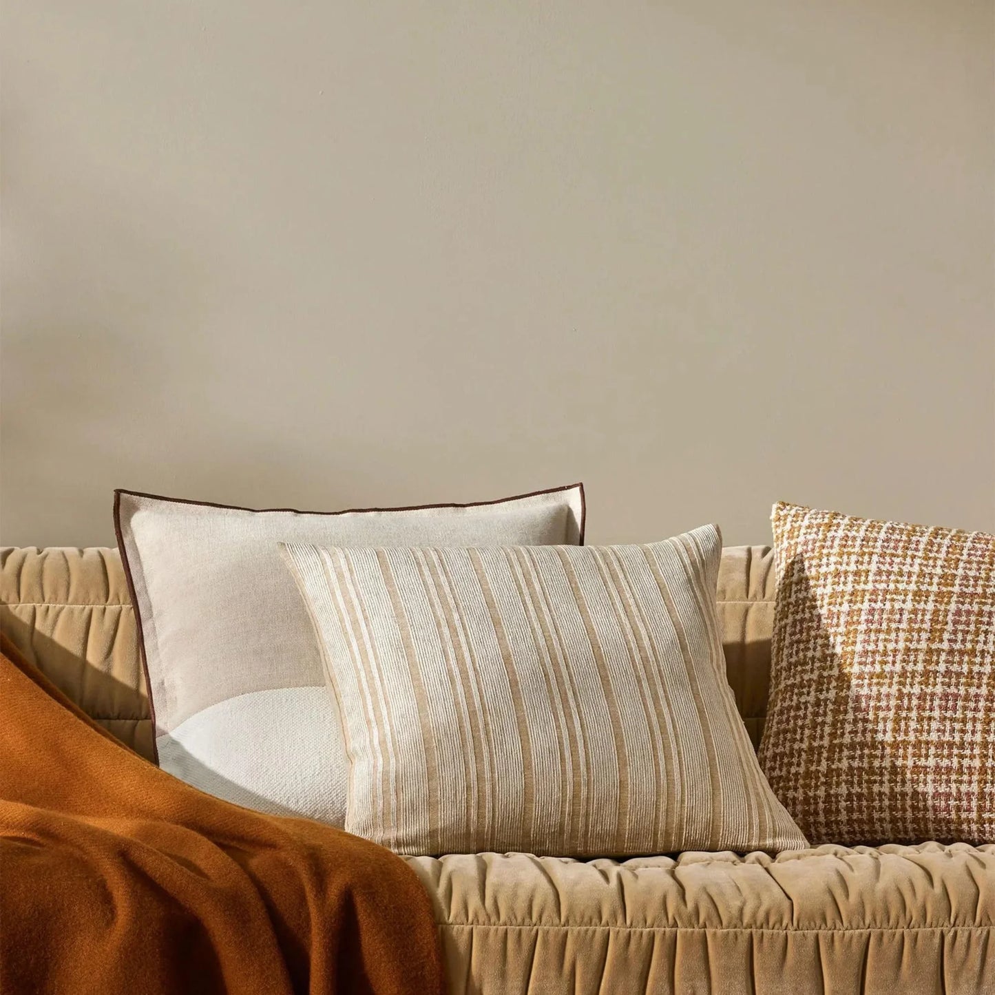 A woven mix of lustrous chenille and dry natural fibres gives Adriana a chic finish and feel. Timeless and classic in its texture, Adriana is suited to stand alone or pair back with patterns or plains. A versatile and beautiful addition to any home. A palette that heros modern, essential, on-trend hues. Butter is a warming colourway of sandstone and honey tones.