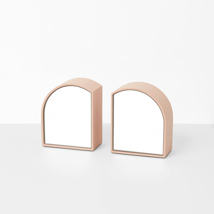 Exploring geometry and reflection, the Archie Bookends are a playful way to add visual interest to a shelf or sideboard. Each decorative bookend is double-sided, with a regular mirrored side and a tinted mirror side, allowing for multiple looks and making a feature of your favourite reads.