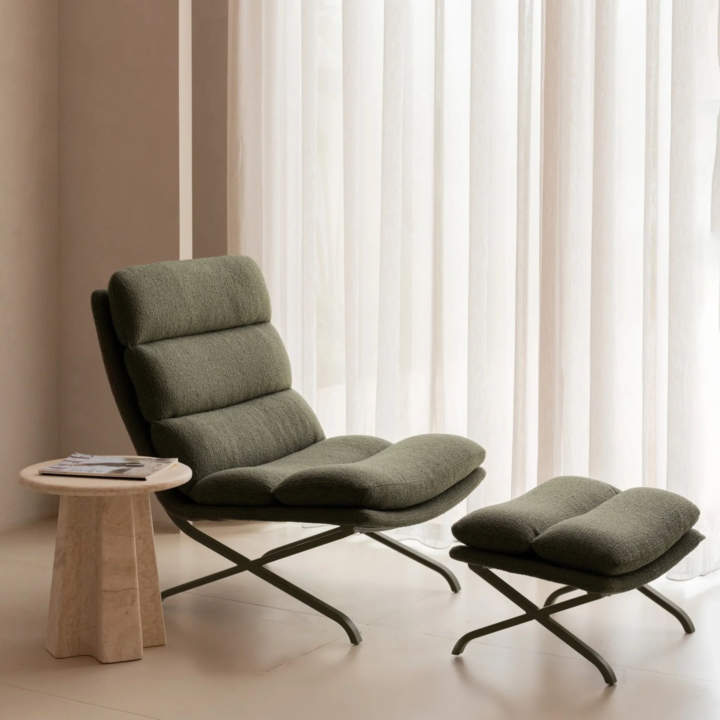 Indulge in ultimate comfort with this stylish armchair and ottoman set, designed to elevate any space. The armchair features a supportive back and plush cushioning, perfect for sinking into, while the matching ottoman offers a convenient place to rest your feet. Together, they create a cozy, inviting setup that’s perfect for reading, relaxing, or enjoying a quiet moment.