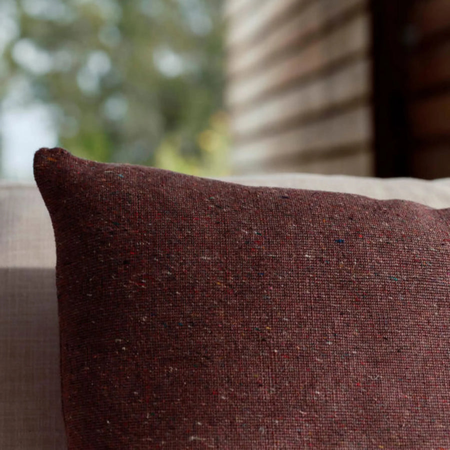 The Audrey Cushion is woven using 100% recycled silk yarn. The silk fibre is peppered with multi coloured flecks creating a subtle mélange effect.
