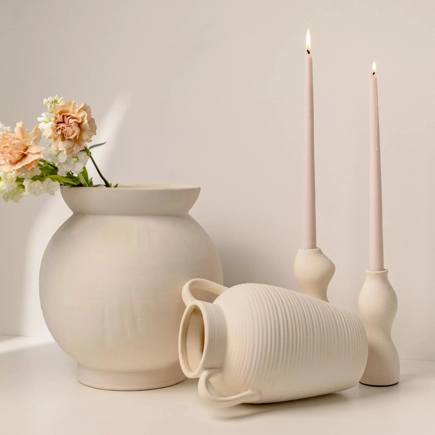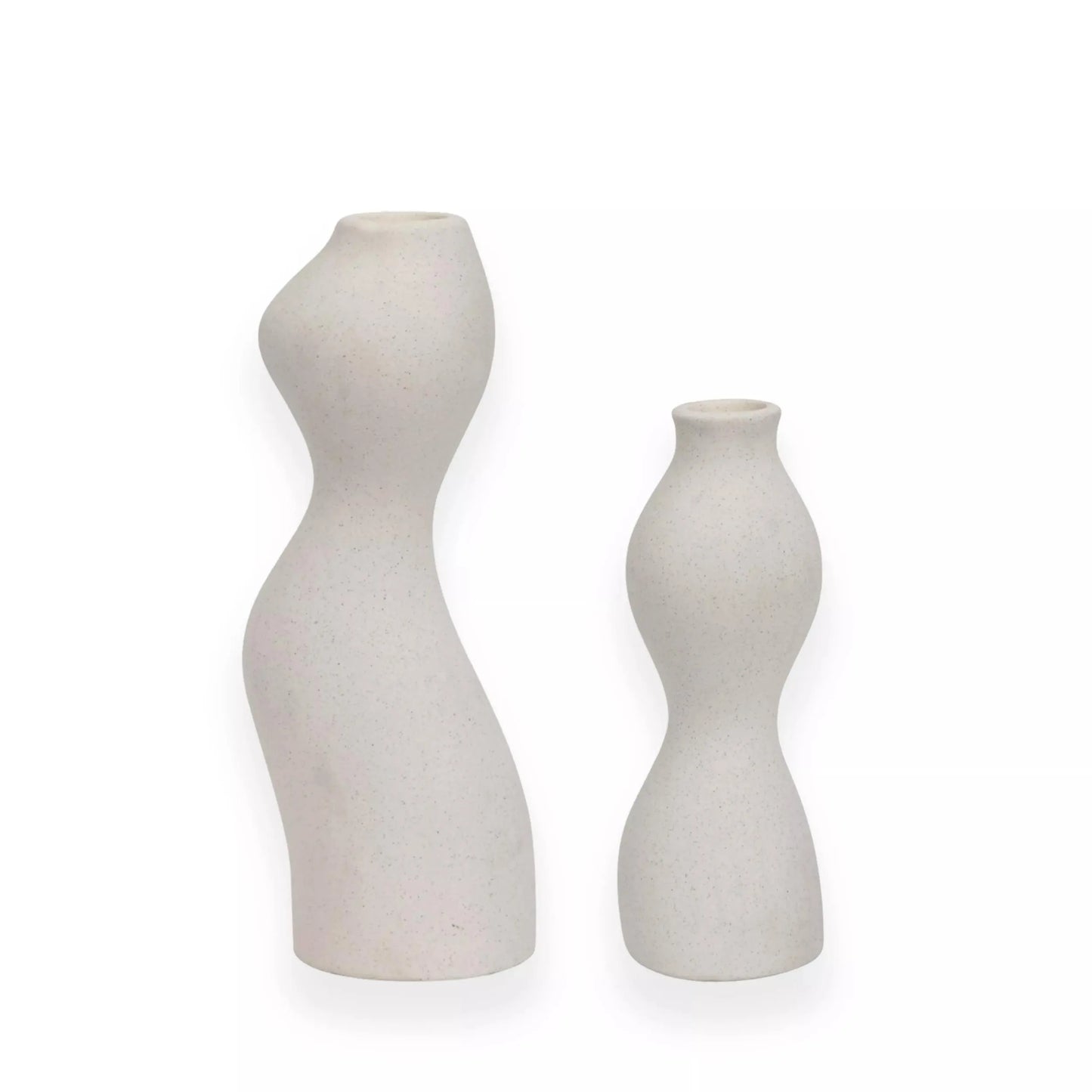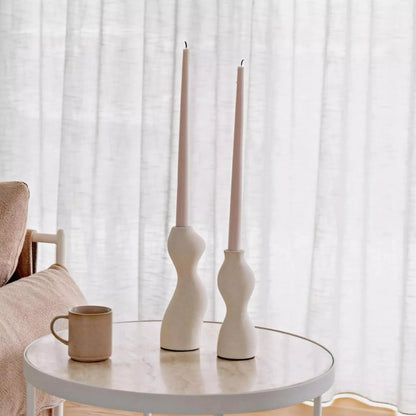 Captivating and sculptural, the Aylar candle holder set emits beautiful soft forms that truly makes for an eye-catching yet refined statement on any table setting or mantel top. Taper candles not included.
