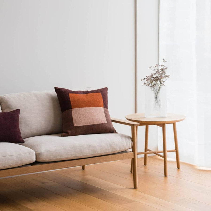 Citta's Colour Study No.2 Cushion features a constructed patchwork that explores geometry and the interaction of colour. The heavyweight cushion is made with a blend of jute, linen and cotton to create an organic, textured finish.