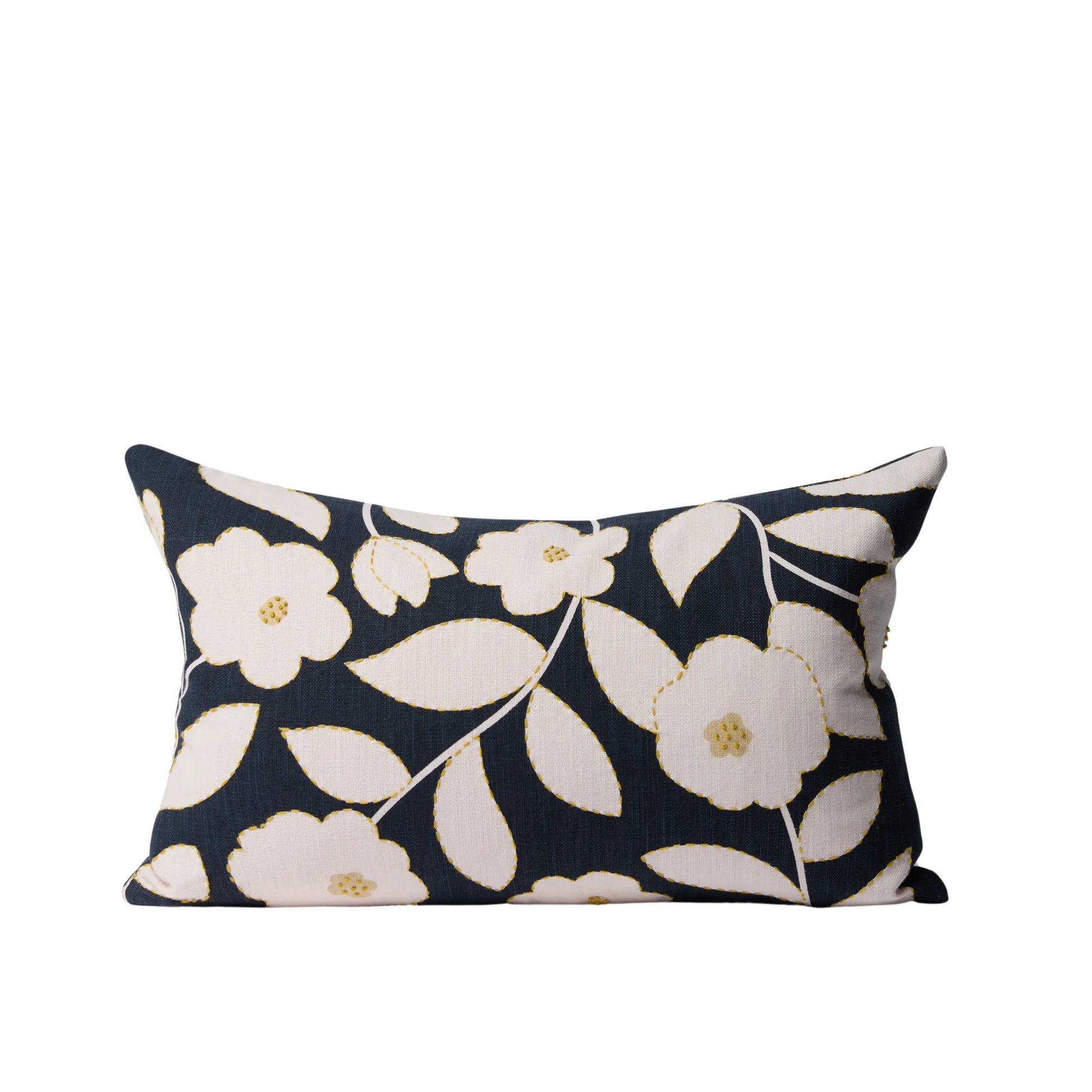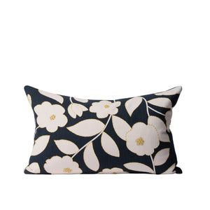 The Ebisu cushion cover makes a statement with its graphic floral design inspired by the iconic cherry blossom. Handwoven running stitches and delicate French knots add visual interest and texture.