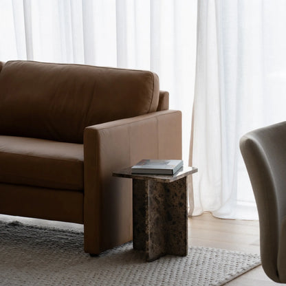 This exquisite side table, made entirely of marble, brings timeless sophistication to your home decor. The smooth, glossy finish highlights the table's luxurious aesthetic, while its solid marble construction ensures durability and stability.