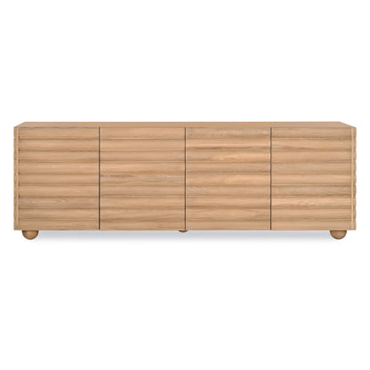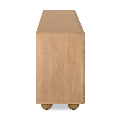 The Flow Sideboard show stopping rounded doors, creates a smooth and elegant facade. Supported by circular legs, this piece blends modern aesthetics with practical storage solutions. Its sleek design and unique features make it a stylish and functional addition to any living space.