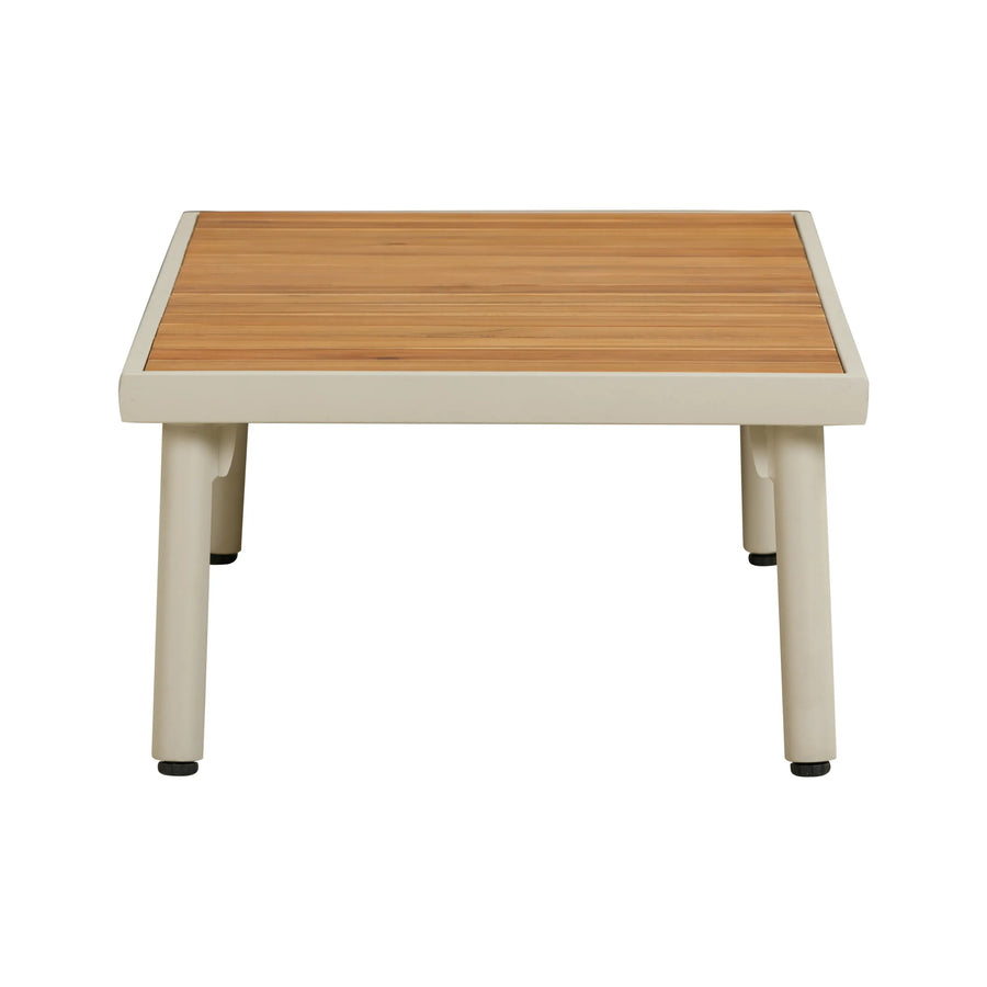 Blend industrial style with natural charm with the Hattie aluminum outdoor coffee table. Featuring a sturdy, powder-coated aluminum frame, the table’s top is adorned with beautiful wood accents that add warmth and texture to its otherwise sleek design. The combination of weather-resistant aluminum and rich wood creates a durable, yet inviting, look that’s perfect for outdoor spaces like patios, gardens, and balconies.