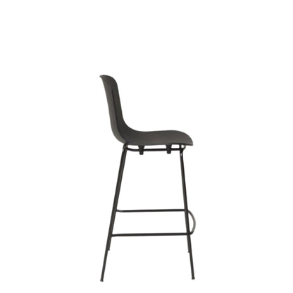 The considered design of the Holi stool allows you to relax your back while maintaining a comfortable seating position. Its metal base, powder-coated in black, perfectly complements the contoured polypropylene shell, resulting in a sleek, monotone aesthetic.