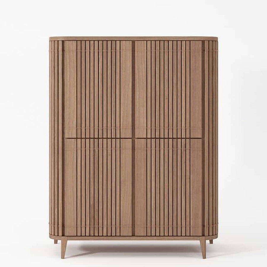The Koppar Cupboard features timeless modern design with smooth curves that accentuate any room its used in. The Koppar range enhances the beauty of its solid teak construction with beautiful copper accents.