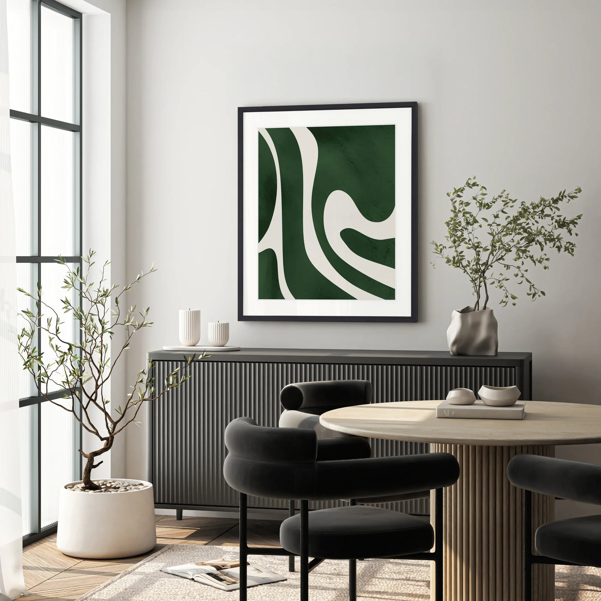This stunning artwork captures the essence of movement, bringing life to clean lines, simple shapes in strikingly modern colour palettes. Each designer artwork has been artist created, is quality printed on fine quality art paper and expertly framed in black timber frame.