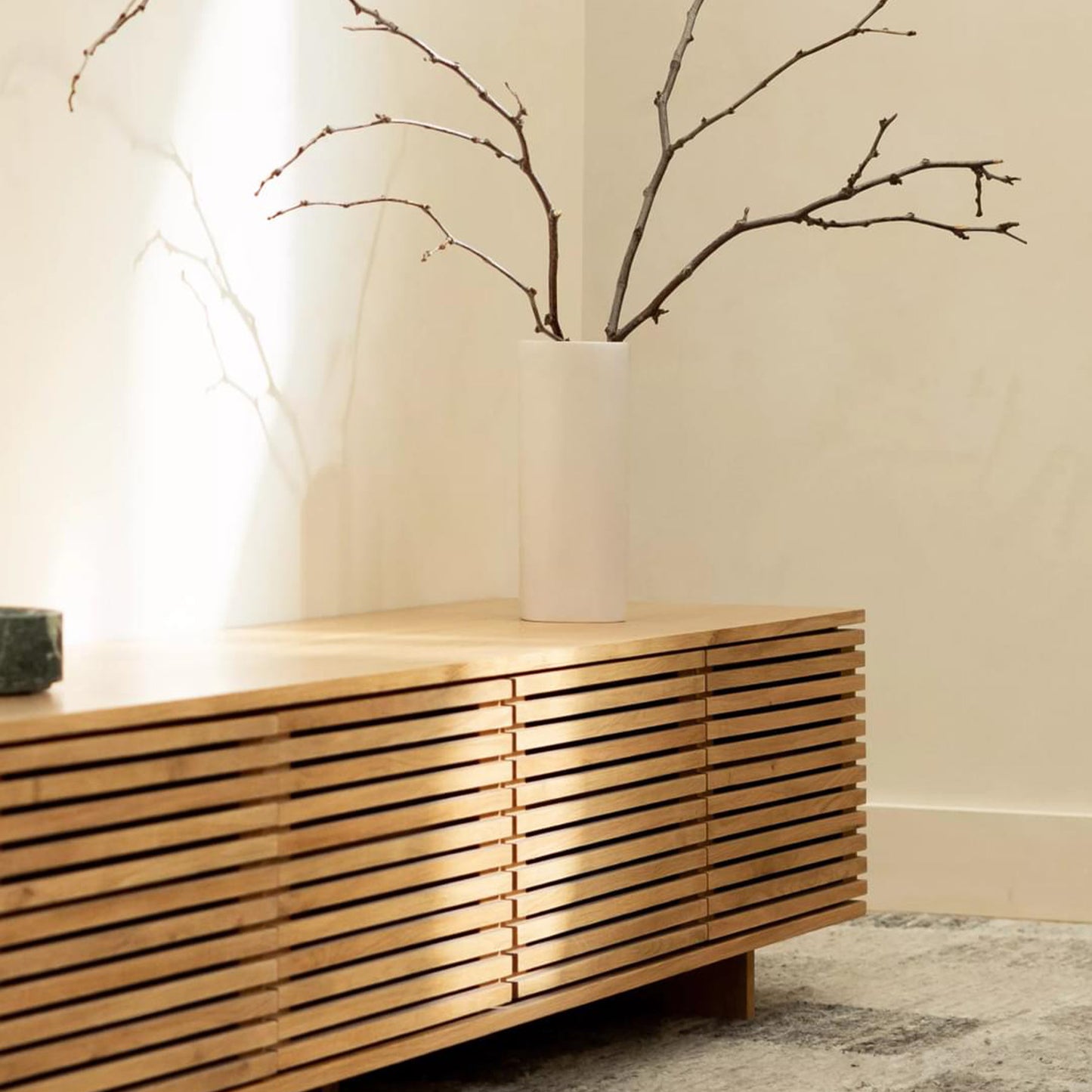 Drawing inspiration from weatherboard homes along the Australian coastline, the Linear Entertainment Unit invites you to slow down and take in the scenery. Generous storage is elegantly concealed behind its slatted doors, while its body effortlessly sits atop recessed legs