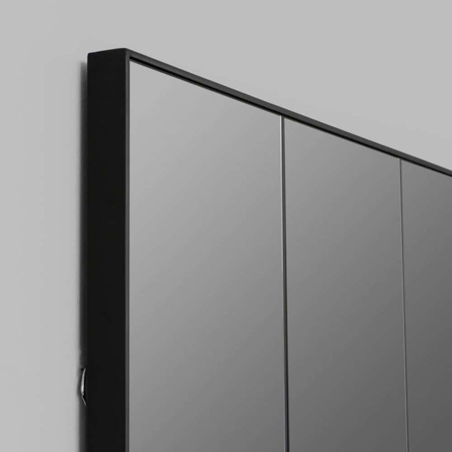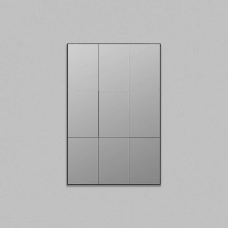 This striking piece features a subtle grid of mirrored panels finished off perfectly by the fine black detailing of the matt black frame.