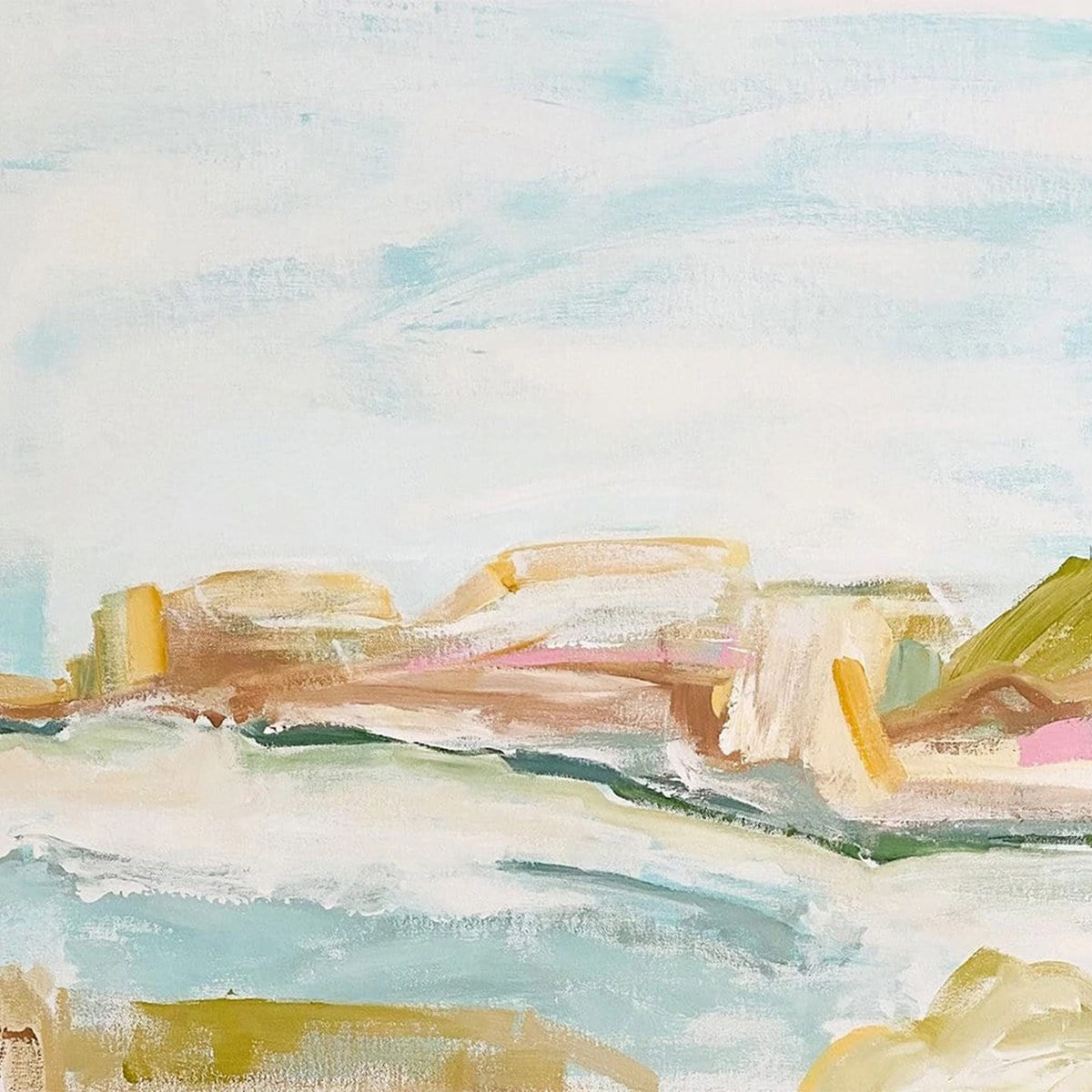 Noontide is a contemporary abstract art piece designed using a series of lines creating a colossal amount of colour & texture. Australian Artist, Marcia Priestley’ evokes an alluring narrative fluent with emotion using acrylic and mixed media application. Creating serene viewings, lyrical tones are sculptured and composed from longitudinal arrangements or pattern formation creating movement, body, texture & difference.
