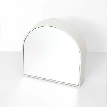 • Arched mirrors for a soft, architectural element that adds sophistication