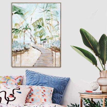 Resort '21 is a contemporary abstract art piece designed using a series of lines creating a colossal amount of colour & texture. Australian Artist, Marcia Priestley’ evokes an alluring narrative fluent with emotion using acrylic and mixed media application. Creating serene viewings, lyrical tones are sculptured and composed from longitudinal arrangements or pattern formation creating movement, body, texture & difference.