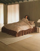 A timeless combination of refined form and unique details, the Ritual Queen Bed provides options aplenty for transforming your space. Created from the seperate Bed Frame and Bed Skirt, Ritual gives a lowline bed design with a timeless pleated aesthetic, the premium Fossil Chocolate fabric adding rich texture to your space. Purchase additional Bed Skirts to change up your colour palette in minutes, or style with just the Bed Frame for a pared back, minimal look.