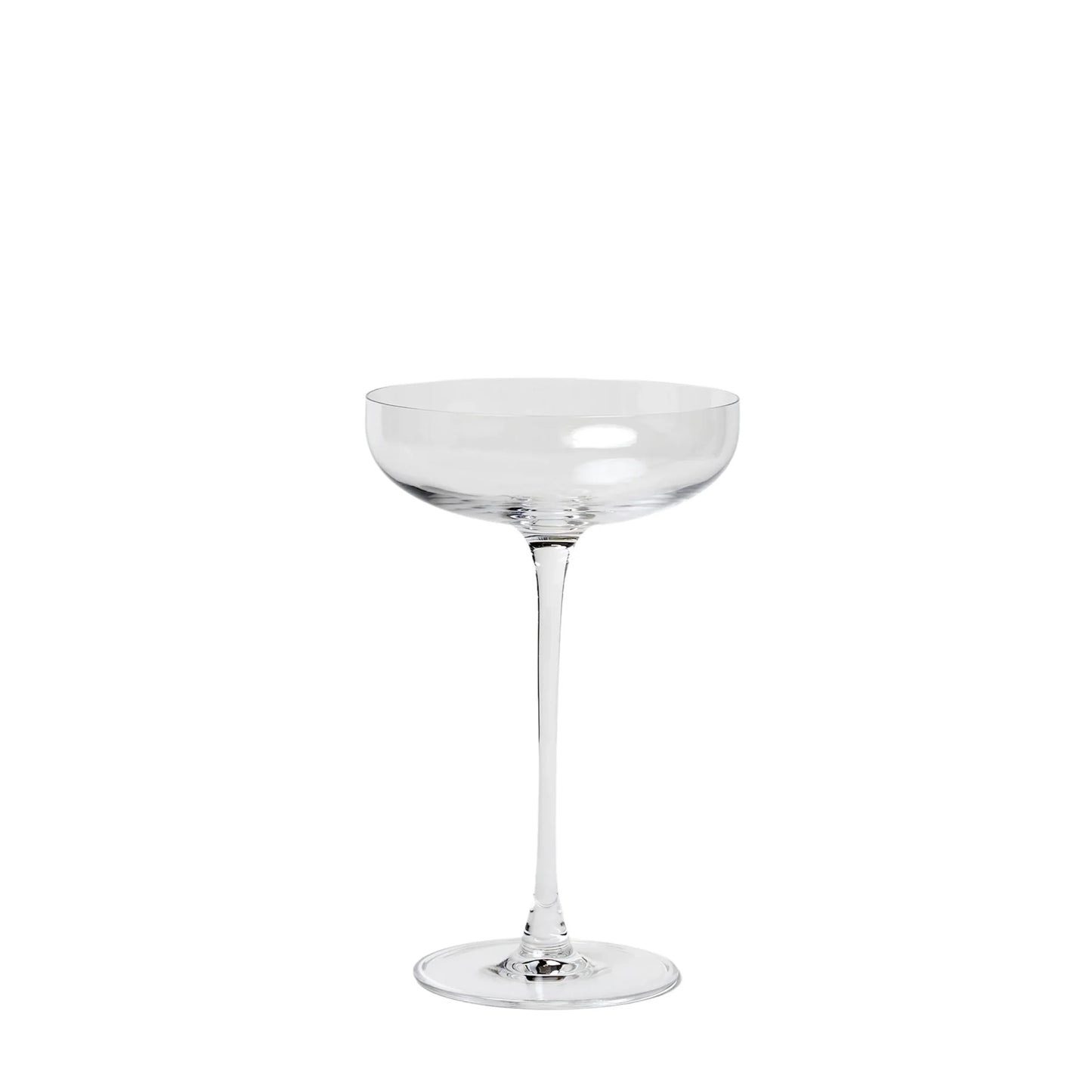 The Savage Coupe glass is a modern addition to your tabletop or drink trolley. The elegant form makes a statement with its sharp and precise silhouette. Proudly hand-blown with lead-free crystal glass. Set includes six glasses.